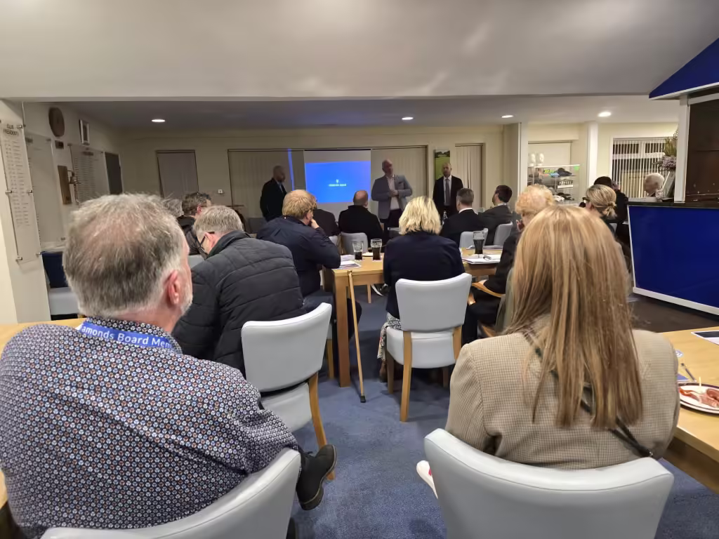 The Board of AFC Rushden & Diamonds and Redington Capital jointly hosted an evening with local councillors, other council representatives and MP Gen Kitchen last night, to put forward the case for Slater’s Lodge – and a new home for AFC Rushden & Diamonds – to be included in the draft local plan, scheduled for publication in Q1 of 2026.